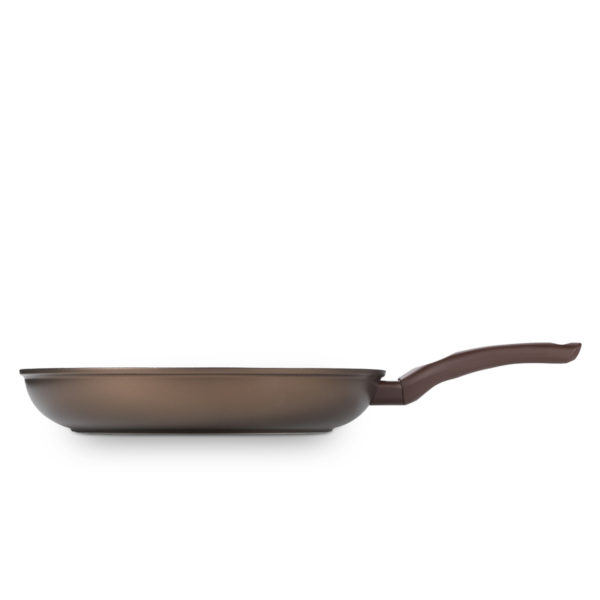 The high-quality five-layer non-stick inner coating ensures excellent resistance to scratches and abrasions to the frying pan in the “Ambra Induction” collection. The high thickness of the aluminum and the non-stick multilayer allow cooking without fat. Ergonomic handle with soft touch effect and non-stick inside with bronze dots. The induction bottom of the frying pan in the “Ambra Induction” collection allows you to use the product on all cooktops, including induction hobs.