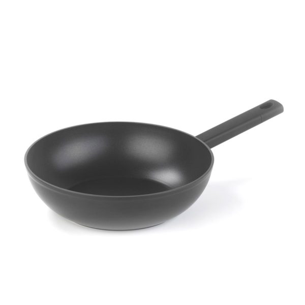 It combines solidity and essential forms with technical solutions that guarantee high performance. In forged alluminium coated with Whitford Quantanium non-stick coating and with a full induction bottom. Suitable for all types of hobs. Composed not only of pans, crêpes pans, grill pans, but also of special pieces, that make it a very large and complete collection.