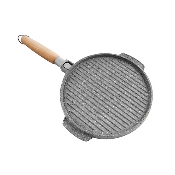 If you don’t know what to choose between grill or griddle, don’t settle for it. With the double sided grill pan it will be possible to change the kind of cooking accordingly to the dish you want to prepare. On one hand a grill, on the other a crepiere. The removable wooden handle allows to put the pan in the oven and also to wash it in the dishwasher. The double sided grill set is equipped with a heat diffuser, which allows to protect the side of the grill from the direct heat source.