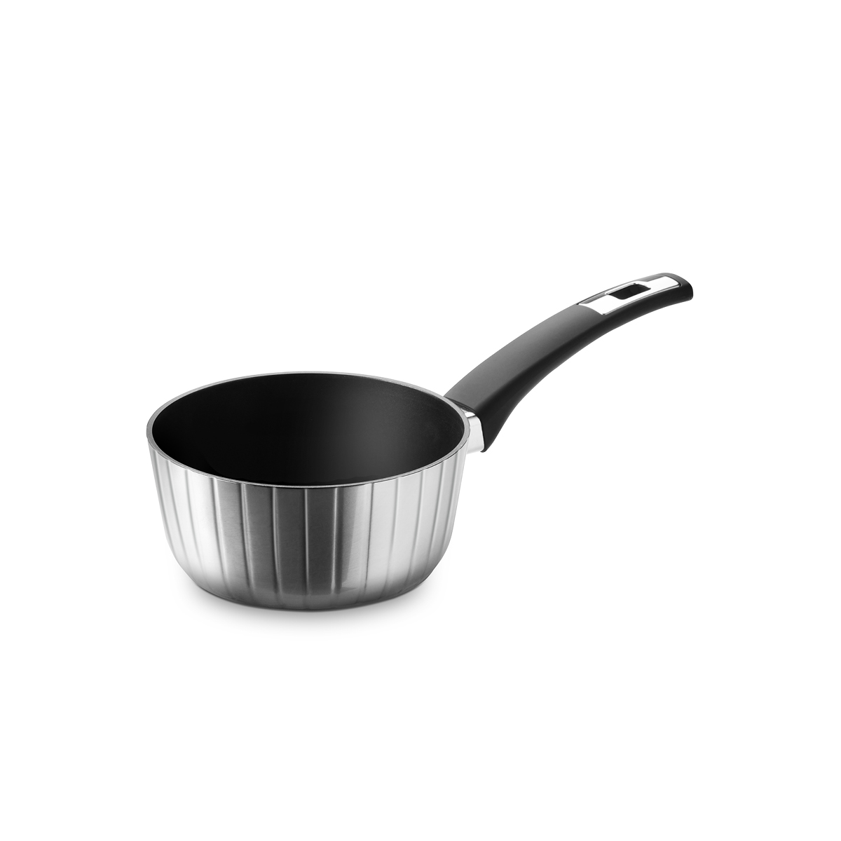 The one handle casserole of the “High Tech Induction” collection is a unique casserole, both in performance and in exterior design, polished by hand and covered with a layer of transparent varnish to preserve the surface over time. The high-quality aluminum and non-stick inner coating make the “High Tech Induction” one handle casserole perfect for all types of food. Ergonomic handle with soft touch effect with steel insert and black non-stick interior. The induction bottom of the one handle casserole in the “High Tech Induction” collection allows the product to be used on all hobs, induction hobs included.