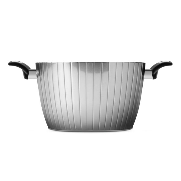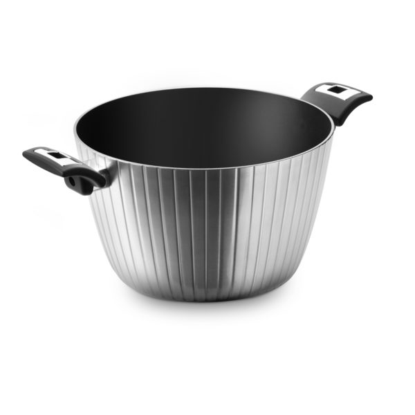The pot of the “High Tech Induction” collection is a unique pot both in performance and in exterior design, polished by hand and covered with a layer of transparent varnish to preserve the surface over time. The high-quality aluminum and non-stick inner coating make the “High Tech Induction” pot perfect for all types of food. Ergonomic handle with soft touch effect with steel insert and black non-stick interior. The induction bottom of the pot in the “High Tech Induction” collection allows the product to be used on all hobs, induction hobs included.