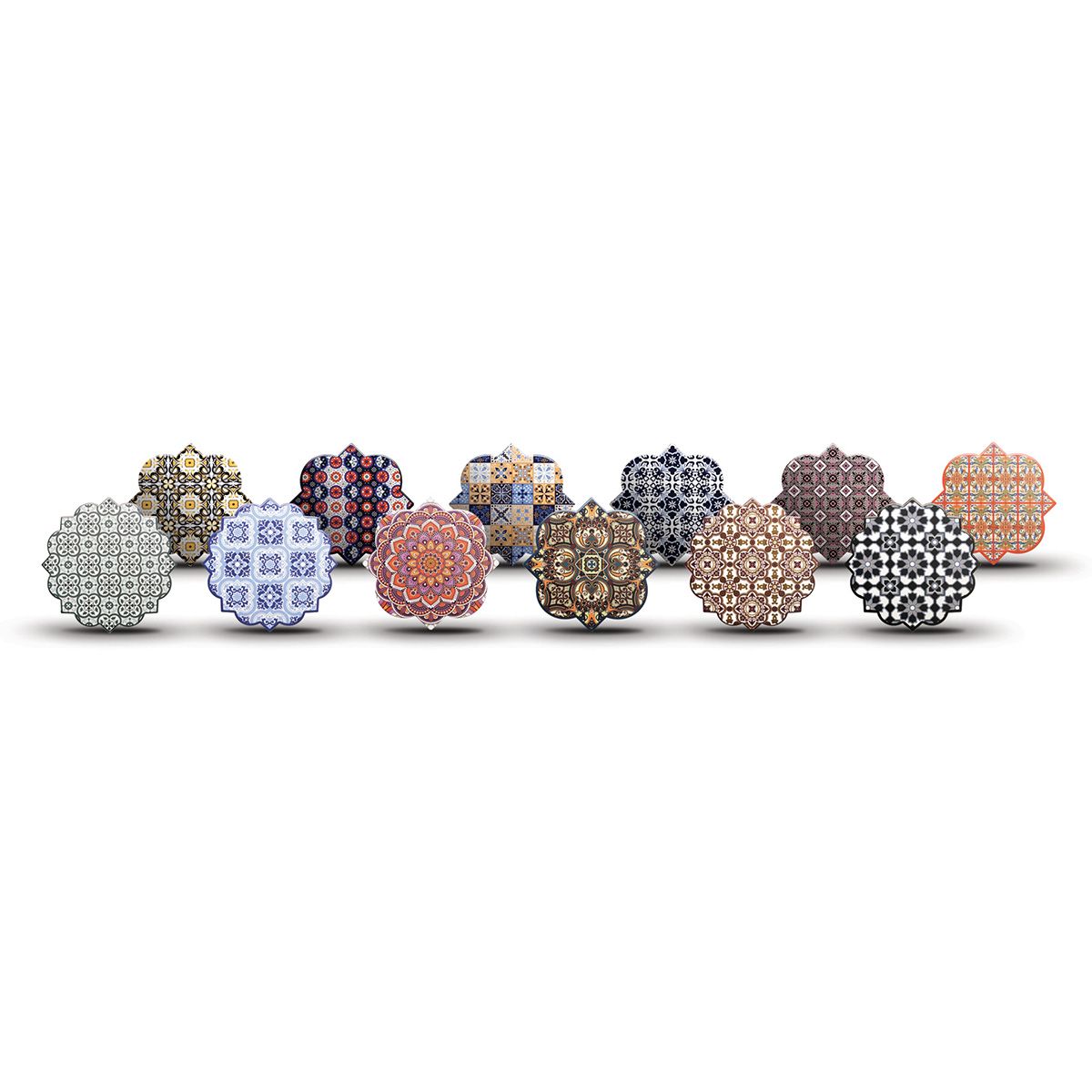 Trivet in ceramic with non-slip bottom and anti-scratch cork bottom. Available in 3 shapes and 12 original decorations.
