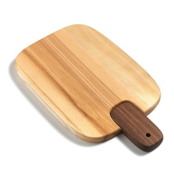 The shapes of the tradition are recovered and reinterpreted with clean and essential lines. Reassuring cutting boards with an ancient taste, bearers of memory and culture. Eternally young. The cutting boards collection in olive ash wood with walnut wood handle is available in rectangular and round shapes.
