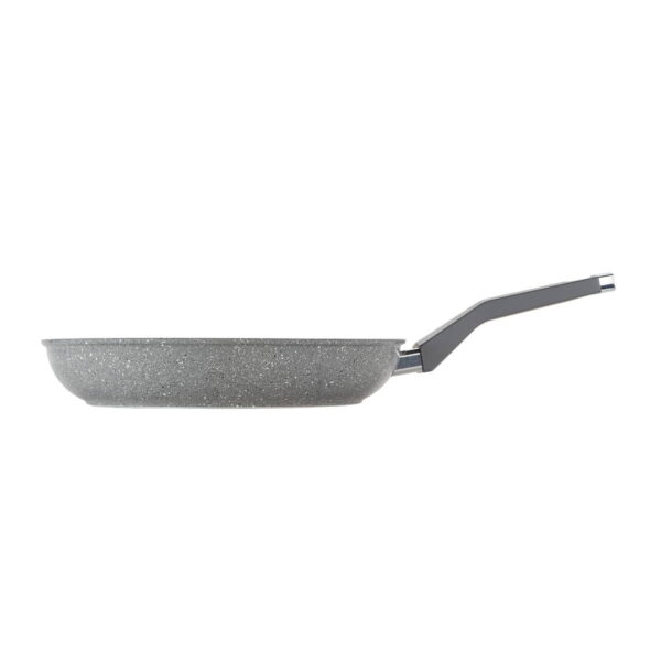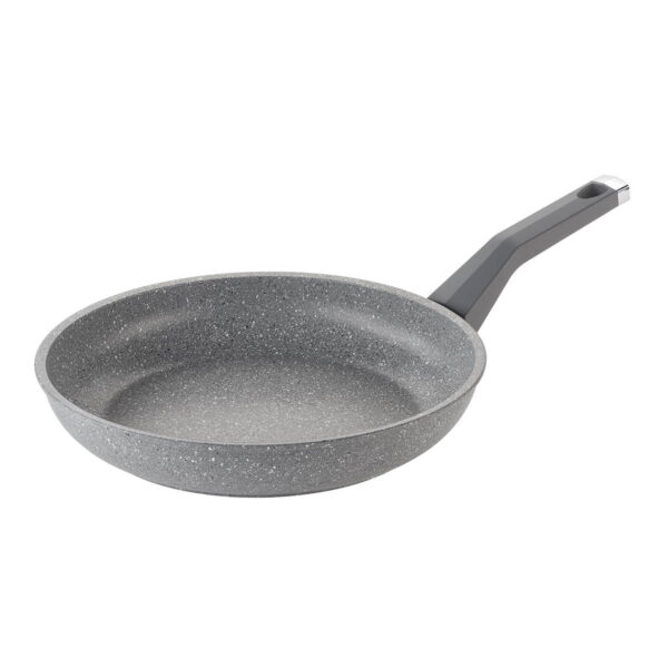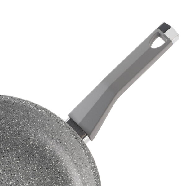 Roccia Viva II: un nome, una garanzia. Cucinare con Roccia Viva II offre la possibilità di preparare le proprie ricette al meglio grazie all’alto spessore dell’alluminio che caratterizza l’intera linea di prodotti. La finitura effetto pietra gli conferisce un aspetto naturale unendo innovazione e tradizione. Il rivestimento interno antiaderente a cinque strati di alta qualità, preceduto dal processo di sabbiatura, garantisce ottima resistenza a graffi e abrasioni e permette di cucinare senza grassi. Il manico ergonomico soft touch con finitura effetto acciaio conferisce alla linea comodità e stile. Il fondo rettificato consente di utilizzare il prodotto su tutti i piani cottura, ad eccezione di quelli a induzione. Senza Nichel e PFOA.