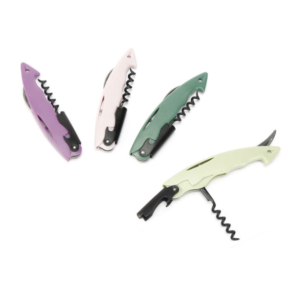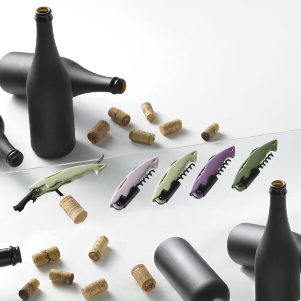 Il cavatappi della linea Klein di Q.b. by Mopita, in plastica ed acciaio verniciato, è pratico e funzionale: il sistema a doppia leva facilita l’estrazione dei tappi in sughero. La lama laterale consente di rimuovere la capsula di protezione della bottiglia. Disponibile nei colori: rosa, verde chiaro, verde scuro e lilla.
