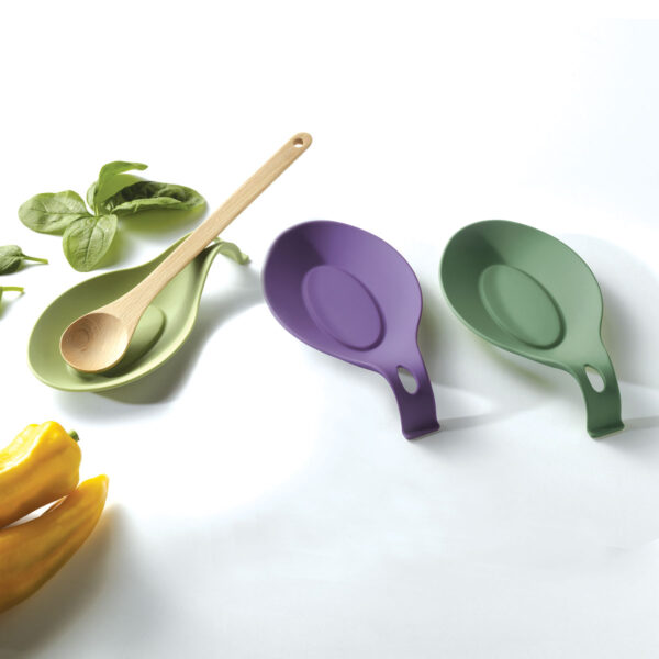 Il poggia mestolo della linea Klein di Q.b. by Mopita è in silicone a forma di cucchiaio. E’ utile per tenere pulito il piano cucina mente le pietanze sono in cottura. Facile da pulire. Disponibile nei colori: verde chiaro, verde scuro e viola.
