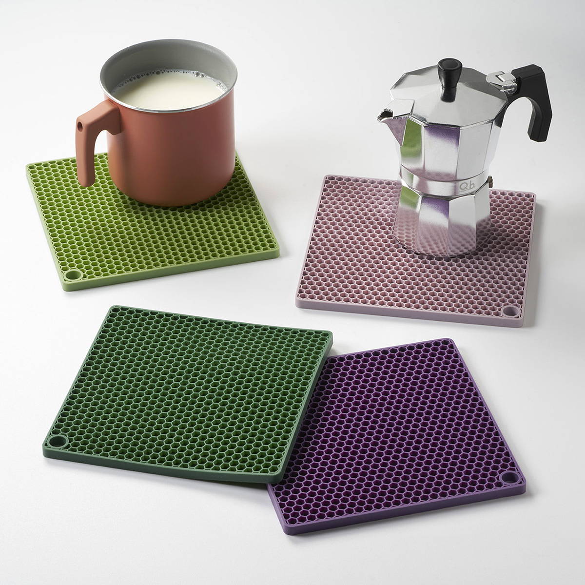 Il sottopentola della linea Klein di Q.b. by Mopita è in silicone colorato. Antiscivolo e antigraffio, è maneggevole e leggero e può essere utlizzato anche come presina.