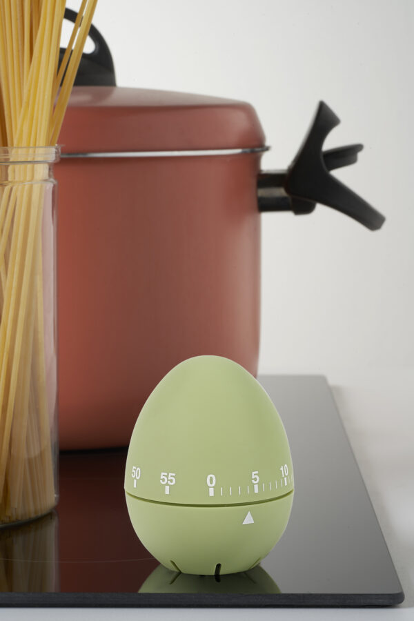 Il timer da cucina della linea Klein di Q.b. by Mopita è facile da utilizzare ed ha una simpatica forma a uovo. Misura il tempo fino a 60 minuti ed è a rotazione meccanica. Non necessita di batterie o ricarica elettrica. Il segnale acustico indica che il tempo impostato è scaduto.